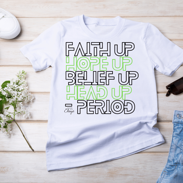 Faith Up, Hope Up, Belief Up, Head Up - Period Message Tee (Fundraiser, PreOrder)